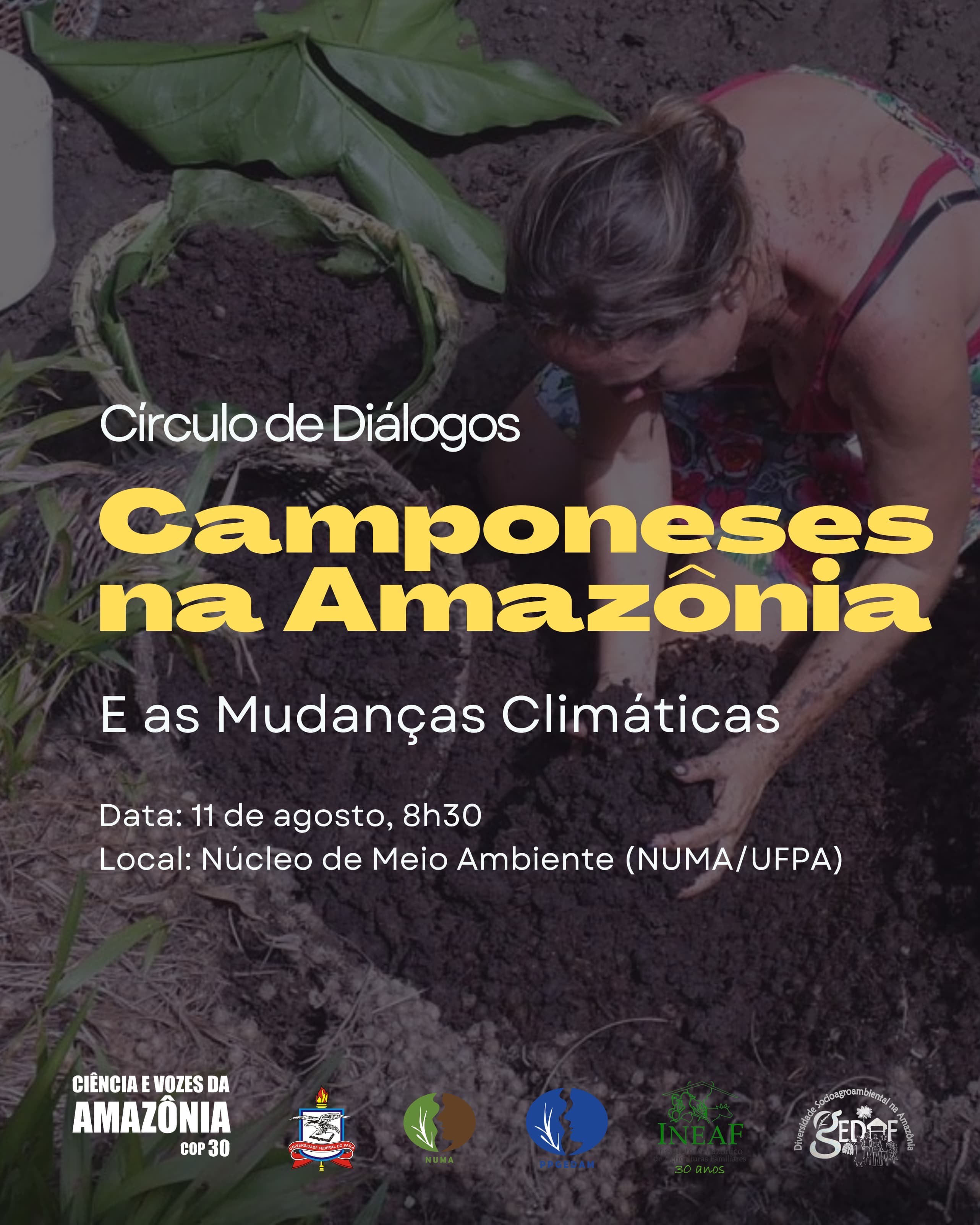 No dia 11 de agosto, o NUMA será palco do Círculo de Diálogos Camponeses na Amazônia e as Mudanças Climáticas, um espaço de troca de saberes e reflexões sobre os desafios e protagonismo das populações camponesas amazônicas frente às transformações socioambientais. Em um momento em que Belém se prepara para sediar a COP 30, neste ano, o evento se insere para a visibilização das experiências de quem vive e resiste nos territórios mais impactados pelas mudanças climáticas.